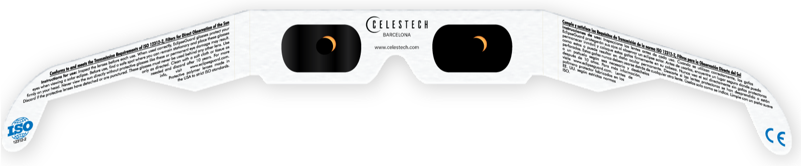 En Celestech fabricamos en Europa gafas de eclipse solar seguras, filtros solares para fotografía y telescopios, así como lámina filtrante a granel para impresores y convertidores.Ofrecemos soluciones personalizadas en diferentes tamaños, formatos y presentaciones — desde pedidos pequeños hasta millones de unidades — siempre con certificación ISO y CE y un firme compromiso con la sostenibilidad.